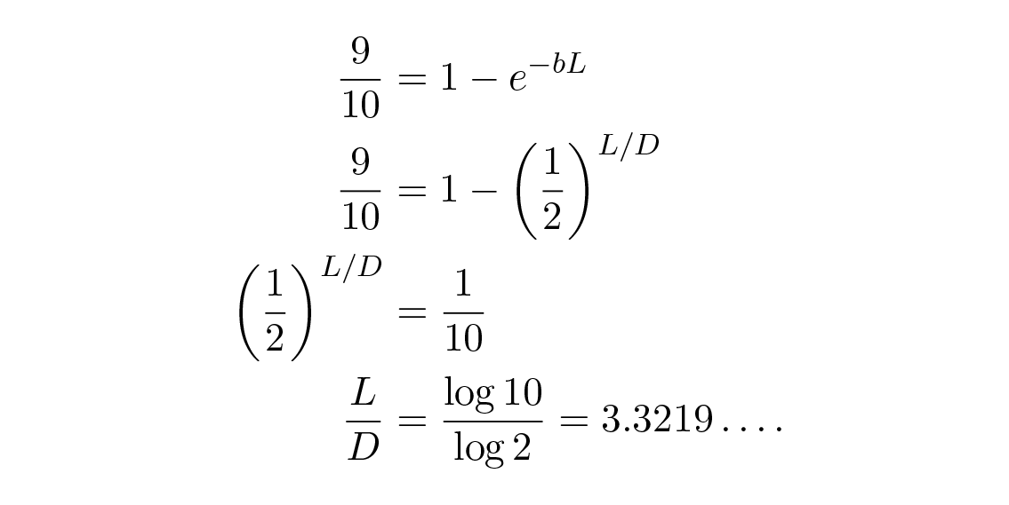 โดยทั่วไปการคำนวณคร่าวๆ ในขั้นแรกจะใช้ตัวเลขที่แน่นอนอย่างที่เราทำ เพื่อให้มีความรู้สึกกับตัวเลข แล้วเราทำการคำนวณซ้ำด้วยพารามิเตอร์เพื่อให้คุณปรับค่าให้เข้ากับข้อมูลได้ดีขึ้นและเข้าใจกรณีทั่วไป ให้ระยะเวลาการเพิ่มสองเท่าเป็น D และอายุขัยของนักวิทยาศาสตร์เป็น L สมการแรกจะกลายเป็น