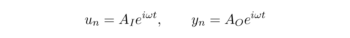 (โดยที่ A_s อาจเป็นเชิงซ้อนเพื่ออนุญาตการเลื่อนเฟส) และจากการแก้หาส่วนของ A_O/_A_I จะได้ฟังก์ชันการถ่ายโอน (transfer function)