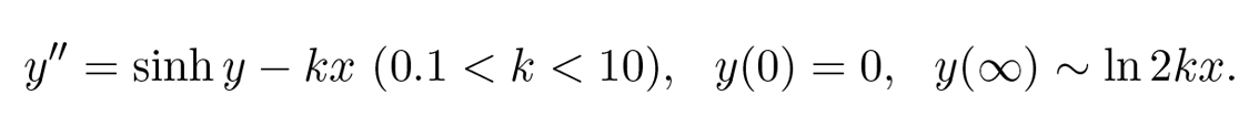 แต่ลองพิจารณาเรื่องความเสถียร: ถ้า y ที่จุด x ที่ค่อนข้างไกลขึ้นไปมีค่าสูงเกินไป ค่า sinh y จะใหญ่เกินไป ทำให้อนุพันธ์อันดับสองเป็นบวกสูงมากและเส้นโค้งจะพุ่งไปทางบวกอนันต์ ในทางเดียวกันถ้า y เล็กเกินไป เส้นจะพุ่งไปทางลบอนันต์ และไม่สำคัญว่าคุณจะไปจากซ้ายไปขวาหรือขวาไปซ้าย ในอดีตผมเคยใช้กลเม็ดชัดเจนเมื่อเจอสถานการณ์ที่สนามทิศทางแยกออกโดยการอินทิเกรตในทิศทางตรงกันข้ามแล้วได้คำตอบที่แม่นยำ แต่ในปัญหาข้างต้นคุณกำลังเดินบนสันเนินทราย และเมื่อทั้งสองเท้าอยู่ด้านใดด้านหนึ่งของสันคุณก็จะลื่นลง