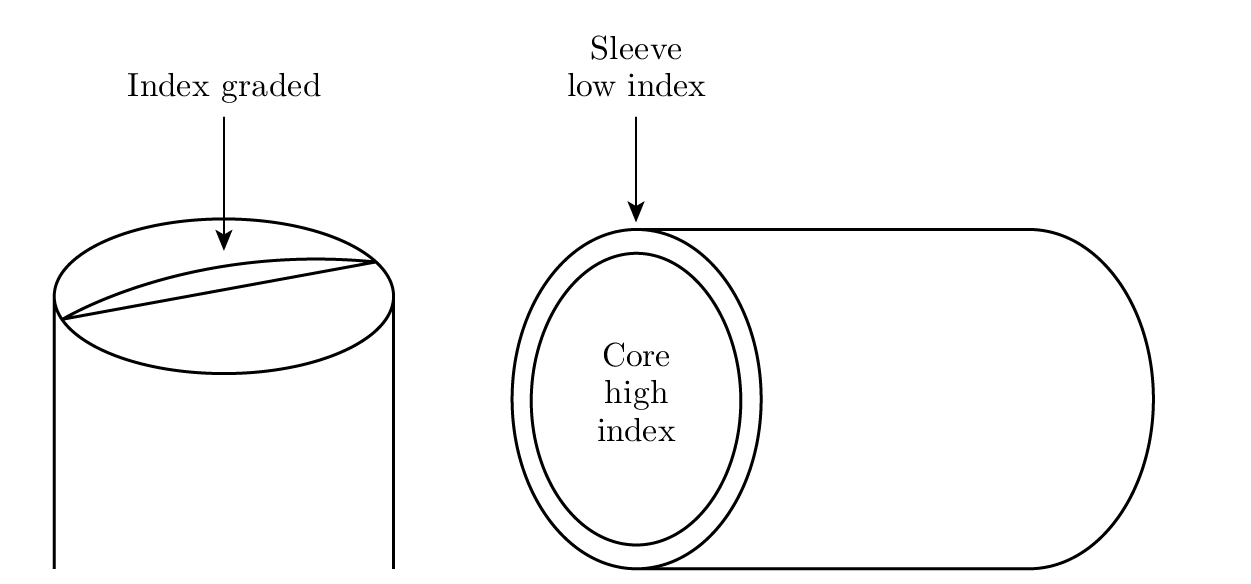 Figure 21.3—เส้นใยที่มีการเปลี่ยนดัชนีหักเหอย่างค่อยเป็นค่อยไป
