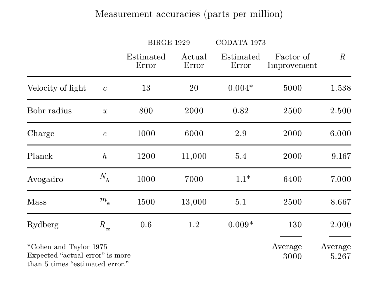 ด้วยการวัดเชิงสถิติอย่างตรงไปตรงมา ค่าคงที่ทางฟิสิกส์ที่ดีที่สุดในตารางจึงไม่ได้แม่นยำอย่างที่อ้างไว้ ทำไมจึงเป็นเช่นนี้? ความประมาทและความมองโลกในแง่ดีเป็นปัจจัยหลัก การครุ่นคิดนานยังบอกว่าทักษะการทดลองปัจจุบันที่คุณถูกสอนก็มักมีข้อบกพร่องและทำให้เกิดความผิดพลาดในการอ้างความแม่นยำ ลองพิจารณาวิธีที่คุณทำการทดลองจริงๆ ไม่ใช่ในทฤษฎี คุณประกอบอุปกรณ์และเปิดมัน แน่นอนว่าอุปกรณ์มักจะทำงานผิดพลาด ดังนั้นคุณจึงต้องใช้เวลาบ่อยครั้งเป็นสัปดาห์เพื่อให้มันทำงานได้ จากนั้นคุณก็พร้อมจะเก็บข้อมูล แต่ก่อนอื่นคุณจะต้อง ปรับตั้งละเอียด ทำอย่างไร? โดยปรับจนได้การทดลองที่สม่ำเสมอ! พูดง่ายๆ คือ คุณปรับเพื่อลดความแปรปรวน; แล้วคุณจะทำอย่างอื่นได้อย่างไร? แต่ข้อมูลที่มีความแปรปรวนน้อยนี้แหละที่คุณส่งให้นักสถิติและใช้เพื่อประมาณค่าความผันแปร คุณไม่ได้ส่งข้อมูลที่ถูกต้องจากการปรับที่ถูกต้อง—คุณไม่รู้วิธีทำ—คุณส่งข้อมูลที่มีความแปรปรวนน้อย แล้วรับความเชื่อถือสูงที่คุณอยากอ้างจากนักสถิติ! นั่นเป็นปฏิบัติทั่วไปในห้องปฏิบัติการ! ไม่แปลกใจเลยที่ข้อมูลจะไม่ค่อยแม่นยำตามที่อ้างไว้