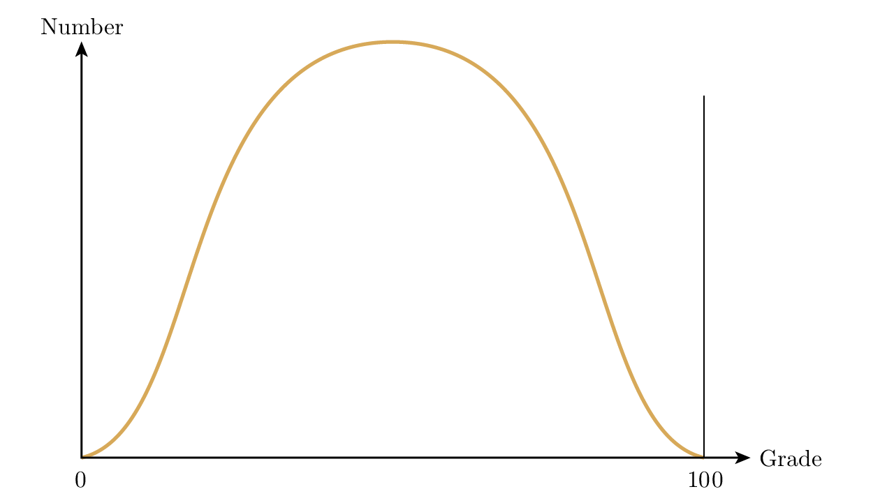 เมื่อออกข้อสอบปลายภาค เช่น วิชาคณิตวิเคราะห์ ผมสามารถได้การแจกแจงเกรดแทบทุกแบบที่ต้องการ ถ้าทำข้อสอบให้ยากเท่ากันทุกคำตอบ นักเรียนจะมีแนวโน้มได้คะแนนเต็มหรือไม่ได้เลย ดังนั้นการแจกแจงจะมีจุดสูงที่ปลายทั้งสอง Figure 29.1 หากในทางกลับกันมีคำถามบางข้อที่ง่าย หลายข้อปานกลาง และไม่กี่ข้อที่ยากมาก จะได้การแจกแจงแบบปกติทั่วไป มีคนบางส่วนที่ปลายทั้งสองด้านและคนส่วนใหญ่กลางตาราง Figure 29.2 ชัดเจนว่าถ้าผมรู้จักชั้นเรียน ผมสามารถจัดให้ได้การแจกแจงตามที่ต้องการ โดยทั่วไปตอนสอบปลายภาคผมกังวลเรื่องจุดตัดผ่าน-ตกมากที่สุด จึงออกข้อสอบให้ชัดเจนว่าจะตัดสินอย่างไรและมีหลักฐานแน่นในกรณีมีคำร้องเรียน