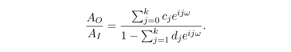 (โดยที่ A_s อาจเป็นเชิงซ้อนเพื่ออนุญาตการเลื่อนเฟส) และจากการแก้หาส่วนของ A_O/_A_I จะได้ฟังก์ชันการถ่ายโอน (transfer function)