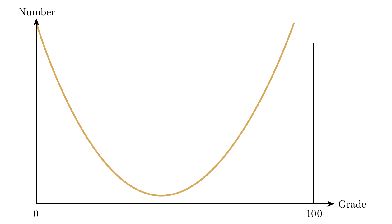 เมื่อออกข้อสอบปลายภาค เช่น วิชาคณิตวิเคราะห์ ผมสามารถได้การแจกแจงเกรดแทบทุกแบบที่ต้องการ ถ้าทำข้อสอบให้ยากเท่ากันทุกคำตอบ นักเรียนจะมีแนวโน้มได้คะแนนเต็มหรือไม่ได้เลย ดังนั้นการแจกแจงจะมีจุดสูงที่ปลายทั้งสอง Figure 29.1 หากในทางกลับกันมีคำถามบางข้อที่ง่าย หลายข้อปานกลาง และไม่กี่ข้อที่ยากมาก จะได้การแจกแจงแบบปกติทั่วไป มีคนบางส่วนที่ปลายทั้งสองด้านและคนส่วนใหญ่กลางตาราง Figure 29.2 ชัดเจนว่าถ้าผมรู้จักชั้นเรียน ผมสามารถจัดให้ได้การแจกแจงตามที่ต้องการ โดยทั่วไปตอนสอบปลายภาคผมกังวลเรื่องจุดตัดผ่าน-ตกมากที่สุด จึงออกข้อสอบให้ชัดเจนว่าจะตัดสินอย่างไรและมีหลักฐานแน่นในกรณีมีคำร้องเรียน